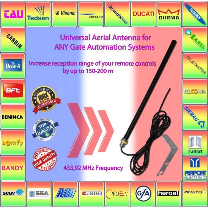 antenne 433 mhz universelle et cable 4 metres toutes motorisations de portail