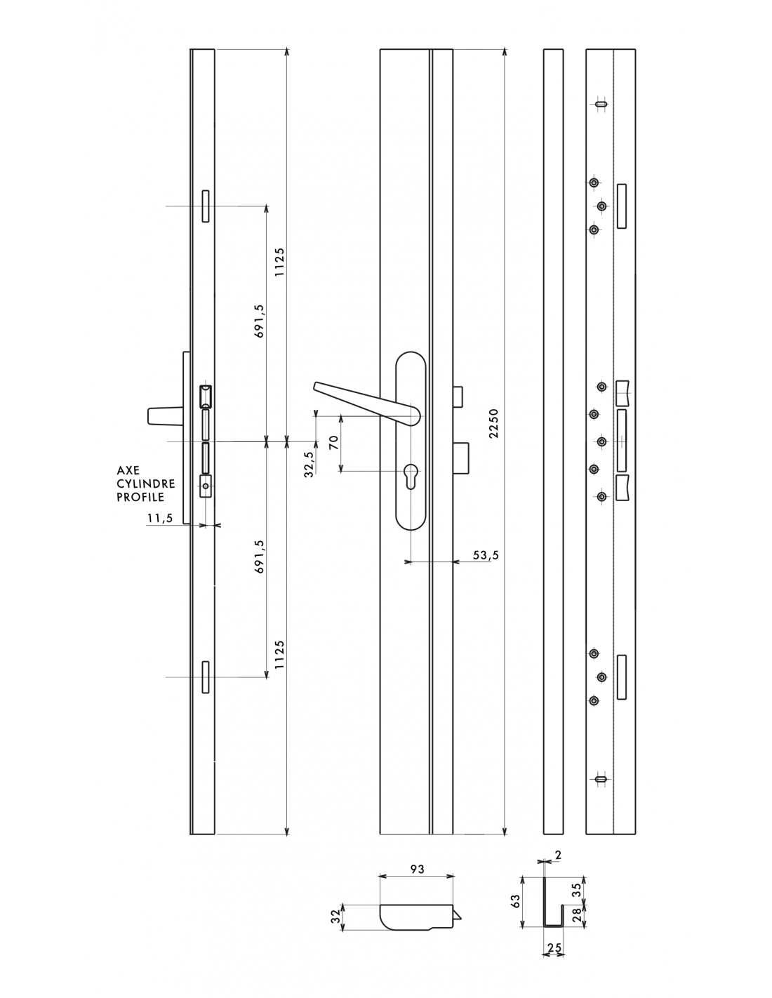 gaches centrale pour cremone de portes d entree serie gauche ferc