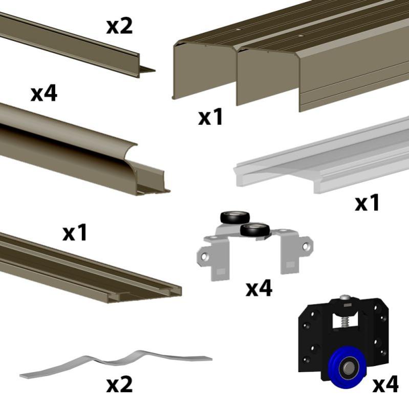 kit ares3 aluminium anodise bronze pour 2 portes de placard coulissantes 16 mm rail 1 8 m 70 kg cdiscount bricolage
