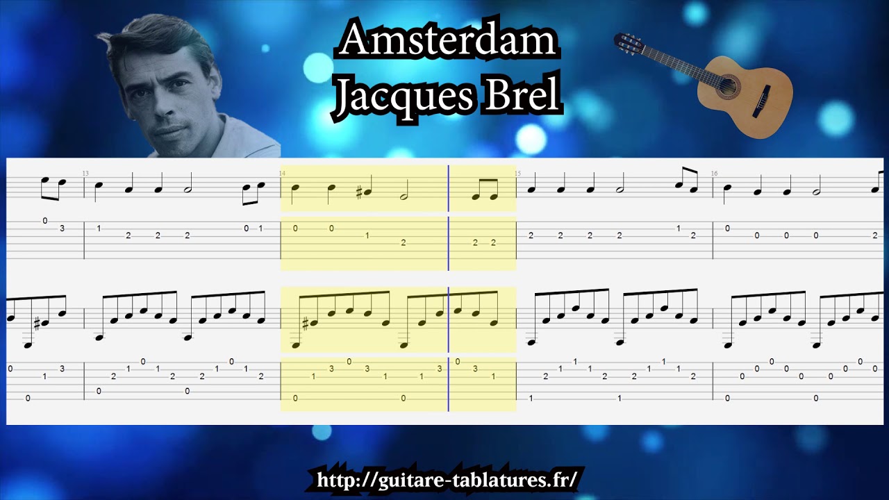 amsterdam jacques brel guitar tab melodie et accompagnement youtube