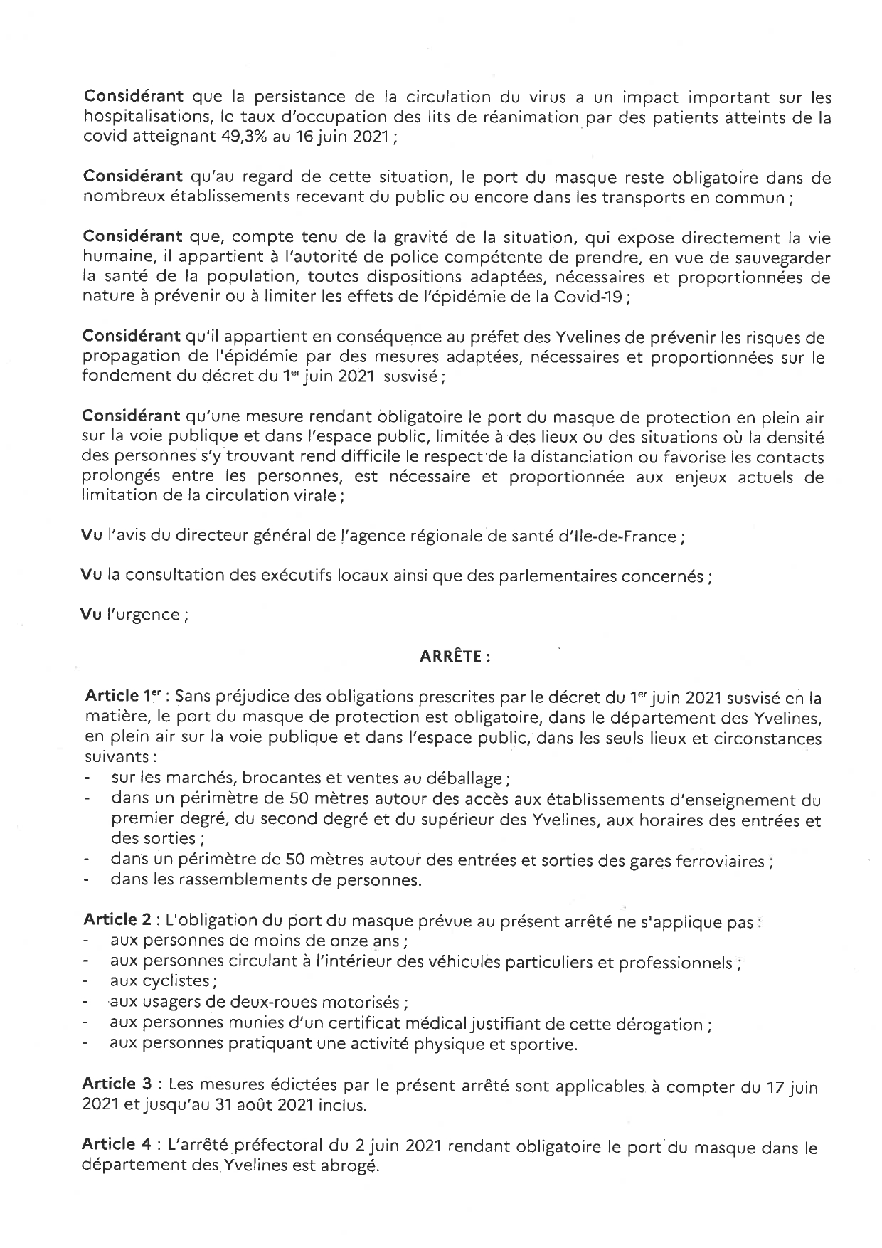 arrete fixant obligation du port du masque dans les yvelines jusqu au 30 avril 2021 village auteuil le roi