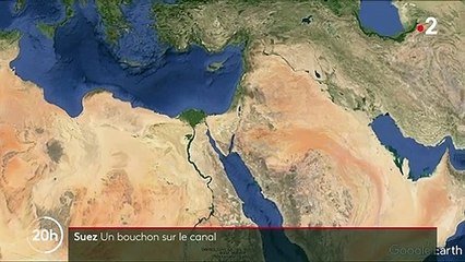un porte conteneurs de 400 metres de long echoue en travers du canal de suez
