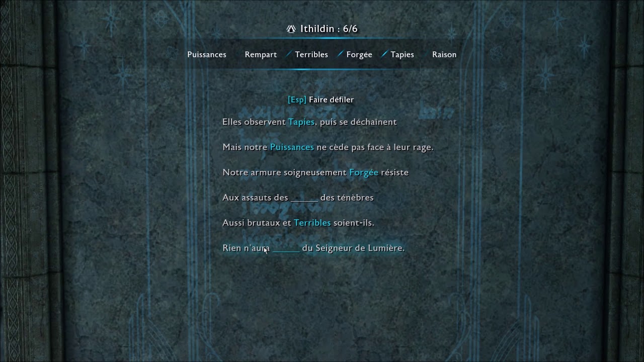 tous les poemes d ithildin solutions de jeux
