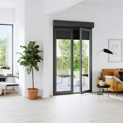porte fenetre pvc 2 vantaux tirant droit avec volet roulant motorise grosfillex 120 x h 215 cm uw 1 3 castorama