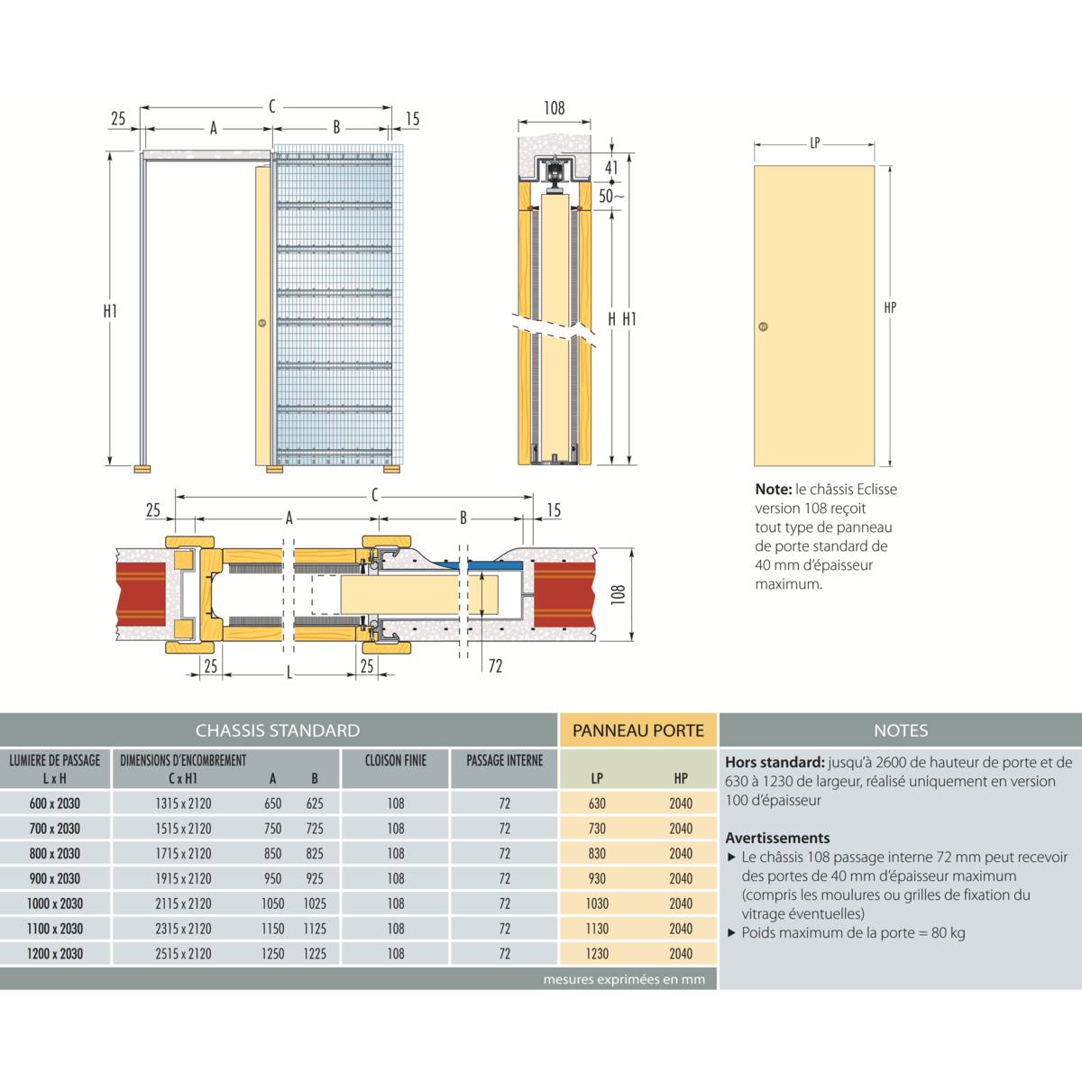 chassis coulissant pour cloison a enduire 2040 x 930 mm 037373 reference batiment