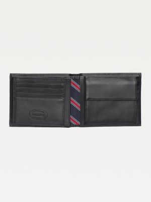 portefeuille en cuir a trois volets noir tommy hilfiger