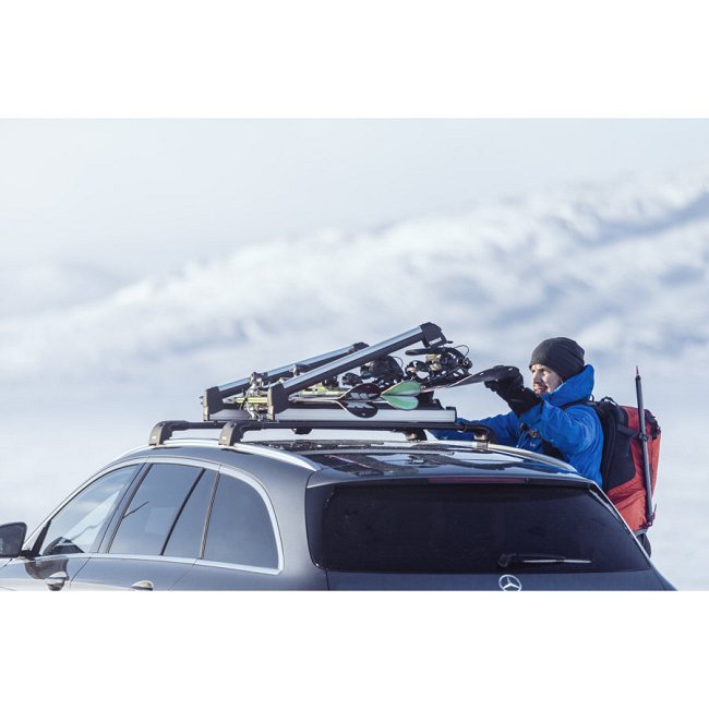 porte skis sur barres de toit snowpack extender thule feu vert