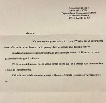 ce depute en marche veut porter plainte apres avoir recu une lettre de menaces a caractere raciste lettre a recevoir je te veux