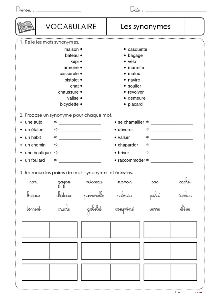 exercice synonymes cm1 cycle 3